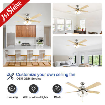 Penggemar Langit-langit Retro Trending Baru 5 Natural Solid Wood Blades 5 Lampu Tradisional Tarik Rantai