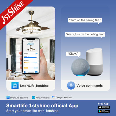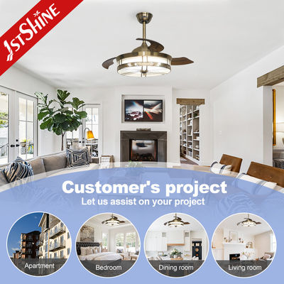 Kipas Langit-Langit LED Lipat Dekoratif Motor Dc Bilah Akrilik yang Dapat Ditarik
