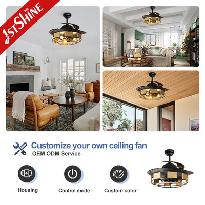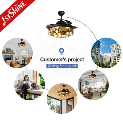 42 Inch Indoor Hitam Retraktable Lampu Dan Remote Control Fan Langit-langit