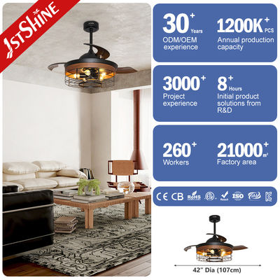 DC Motor 65W Penggemar Langit-langit Dekoratif yang Dapat Ditarik Dengan 5 Kit Cahaya