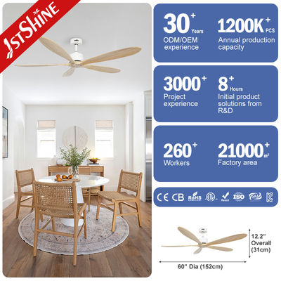 Pabrik 5 Pisau Kayu 60 Inci Fan Langit-langit Dengan Lima Kecepatan DC Motor