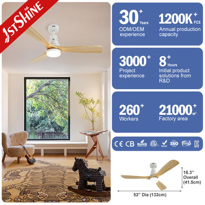Kipas langit-langit dilengkapi dengan tiga bilah kayu solid yang memberikan aliran udara yang kuat.