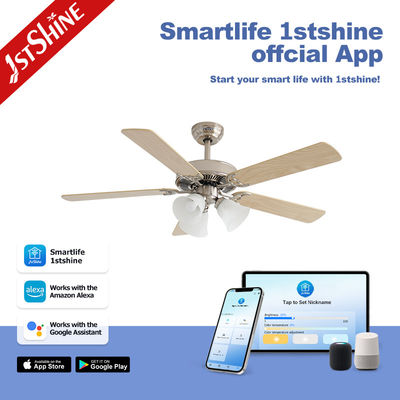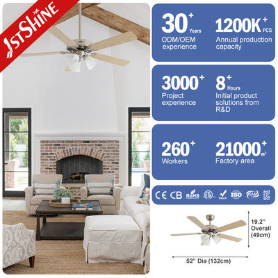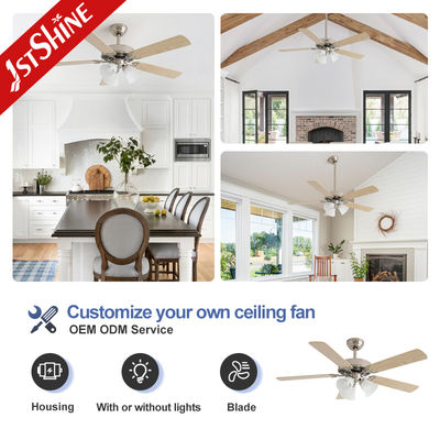 Dimmable 52 Inch 3 Warna Lampu LED Langit-langit Fan Indoor Plywood Blade