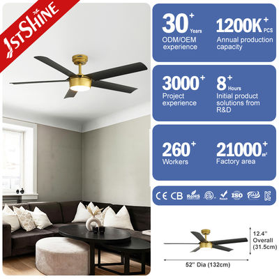 Kipas Angin Langit-Langit 5-Bilah Modern 52" dengan Lampu LED dan Remote Control